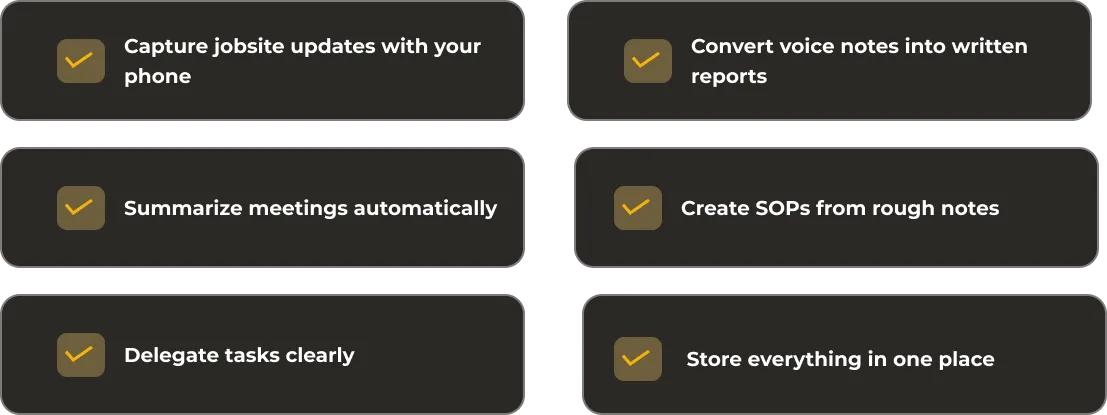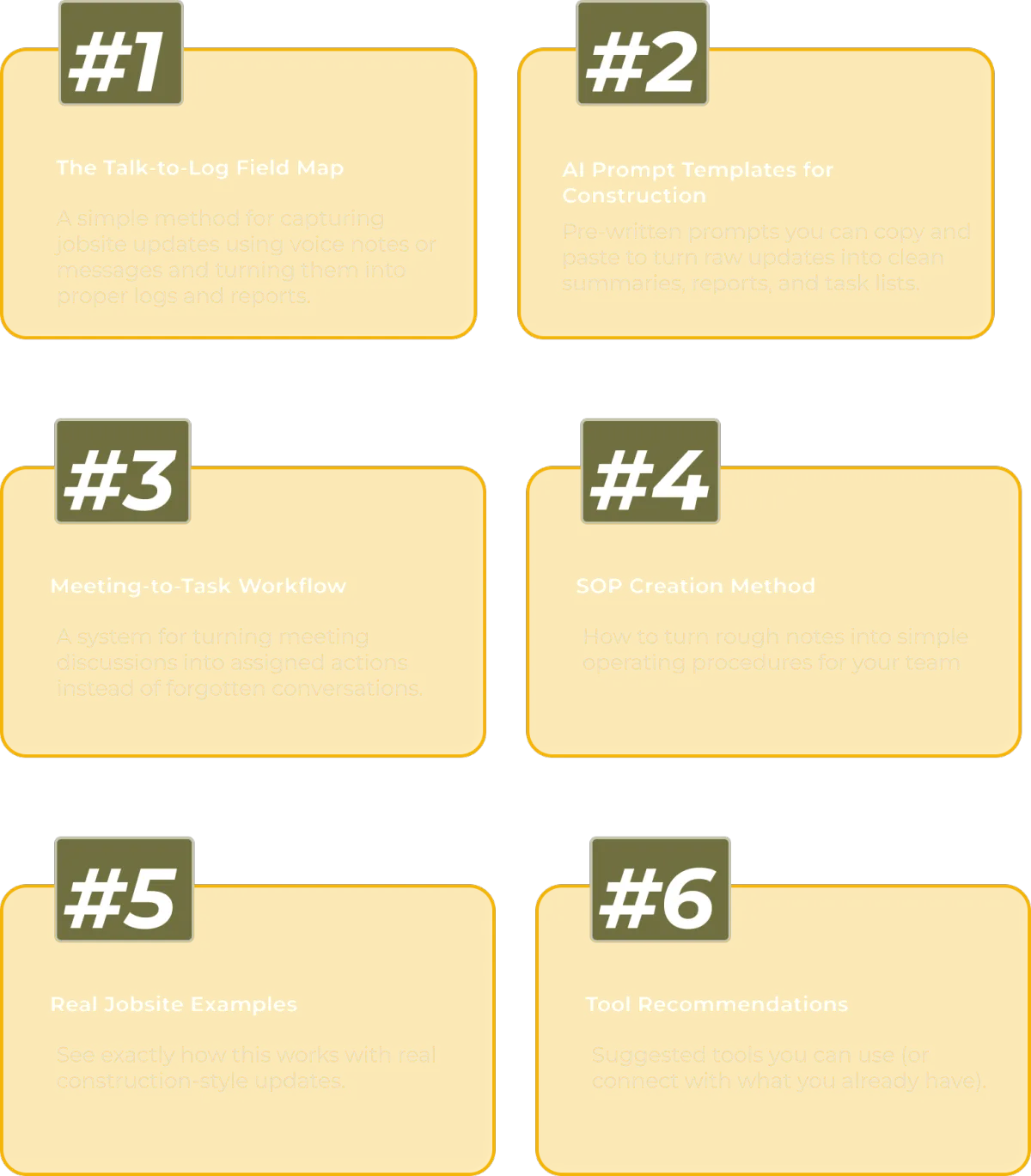Learn how to turn jobsite voice notes, meetings, and crew updates into organized reports and tasks using simple AI workflows.